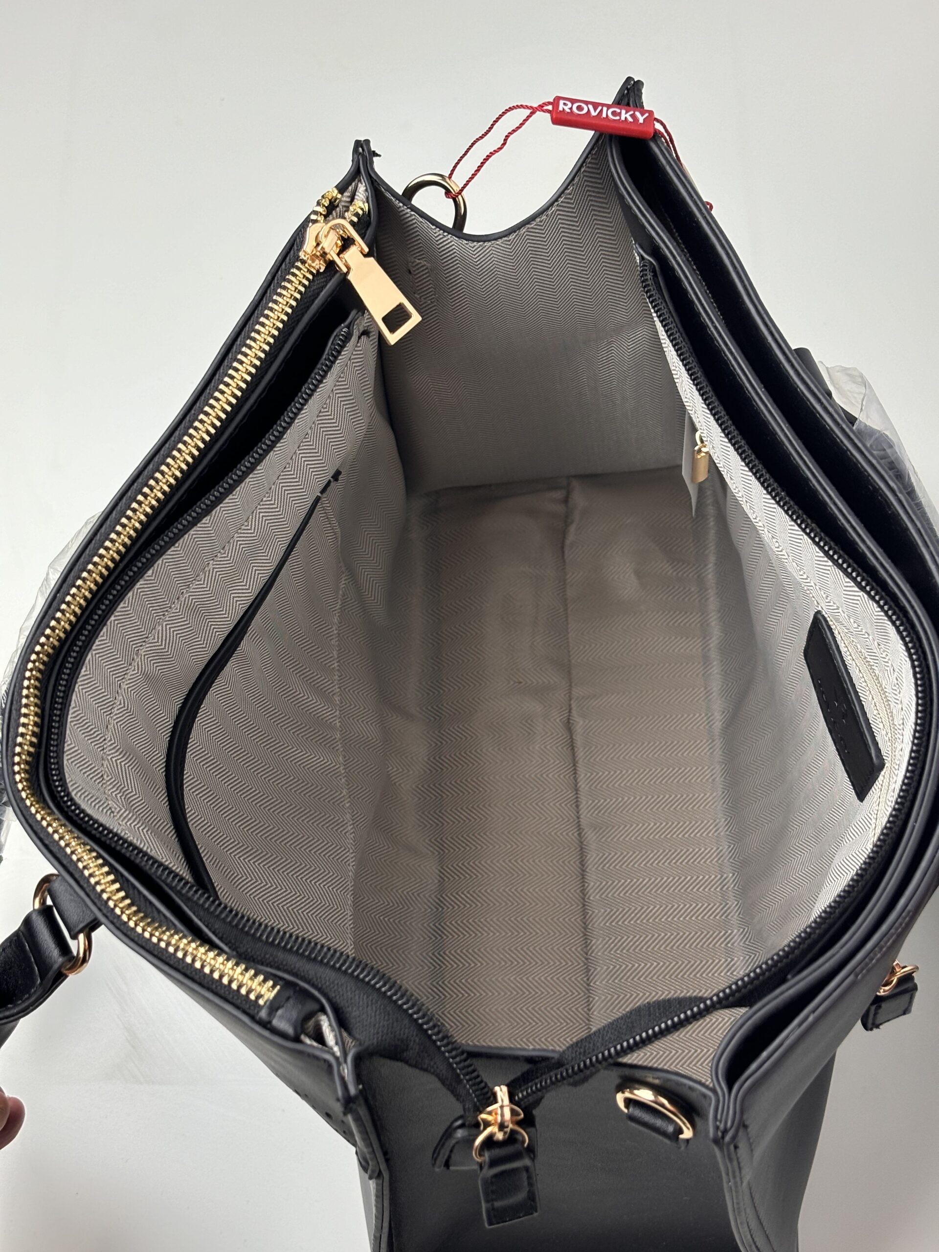 Klasyczna torebka z eko skóry marki Rovicky to elegancka i funkcjonalna torebka, idealna dla każdej kobiety ceniącej sobie styl i praktyczność. Wykonana z wytrzymałej eko skóry o ładnej fakturze i klasycznym kształcie, doskonale sprawdzi się zarówno na co dzień, jak i na specjalne okazje. Ta elegancka torebka posiada  trzy komory, co zapewnia wygodny dostęp do przechowywanych rzeczy oraz ich bezpieczeństwo, ponad to ma kieszonkę zewnętrzną i trzy wewnętrzne.Dodatkowo, torebka wyposażona jest w dopinany, regulowany pasek, który pozwala na noszenie jej zarówno na ramieniu, jak i w ręce.