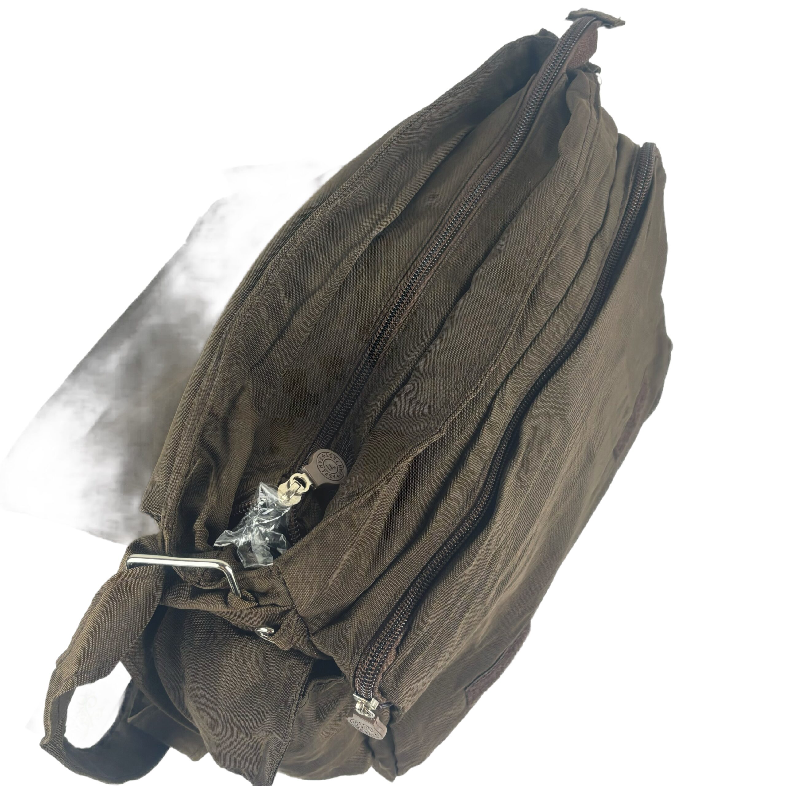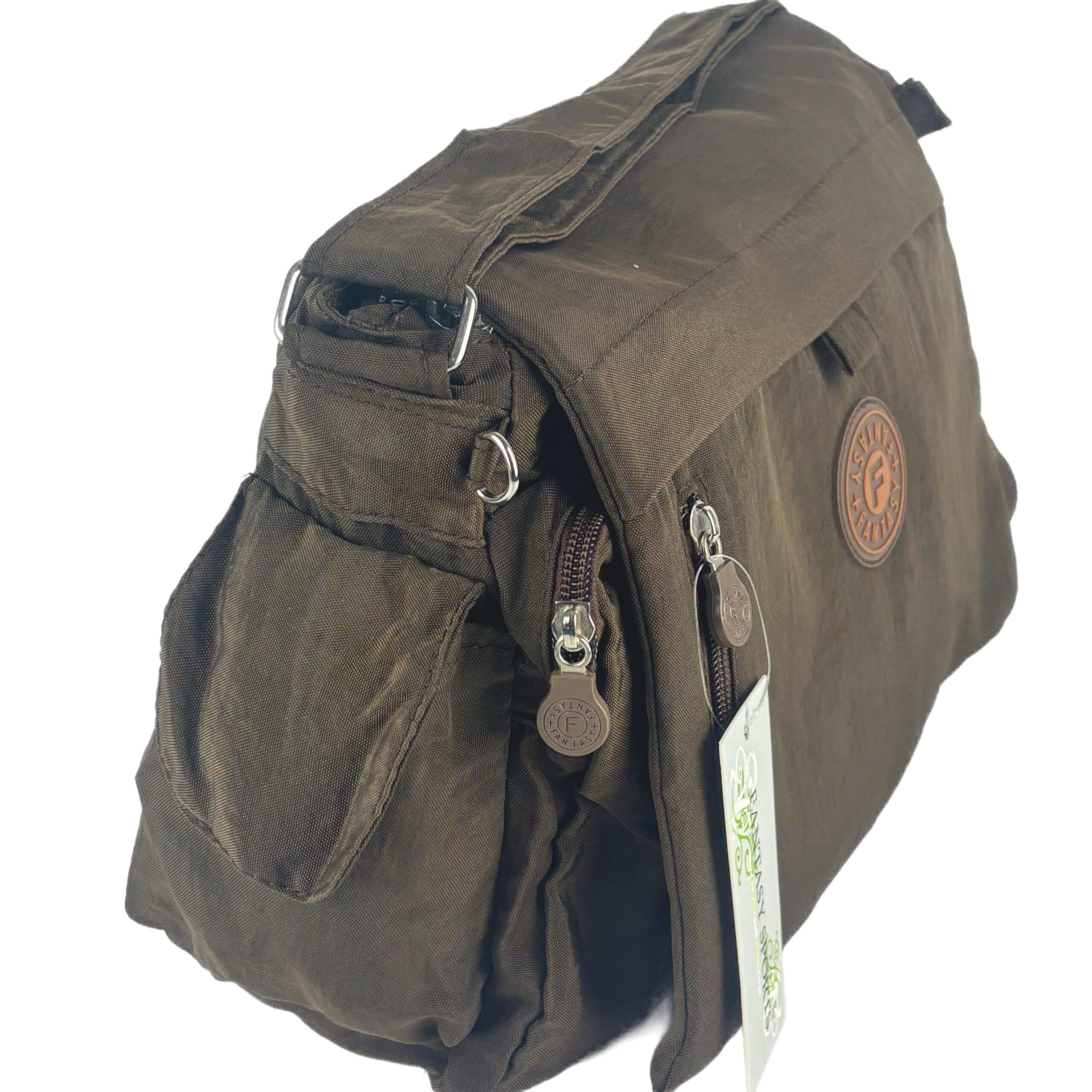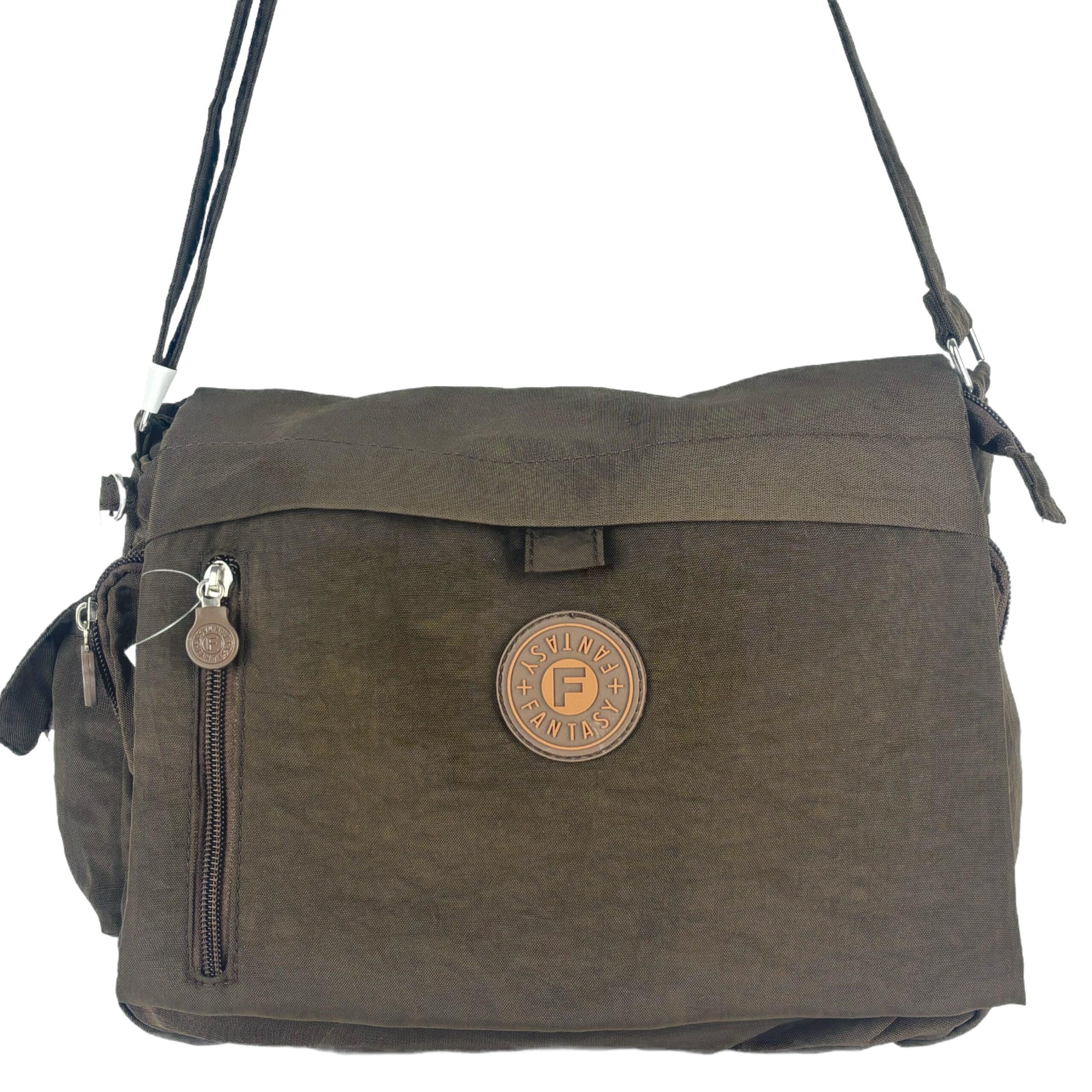 Torebka wykonana jest z mocnego i nie przemakalnego materiału, idealna dla każdej kobiety, która ceni sobie styl i praktyczność. Zapinana na klapę z kieszonkami co sprawia dodatkowe bezpieczeństwo. Posiada trzy kieszenie zewnętrzne z zamkiem i dwie wewnętrzne, czyni ją bardzo funkcjonalną i praktyczną. Pasek który jest regulowany umożliwia przełożenie torebki przez ramię.